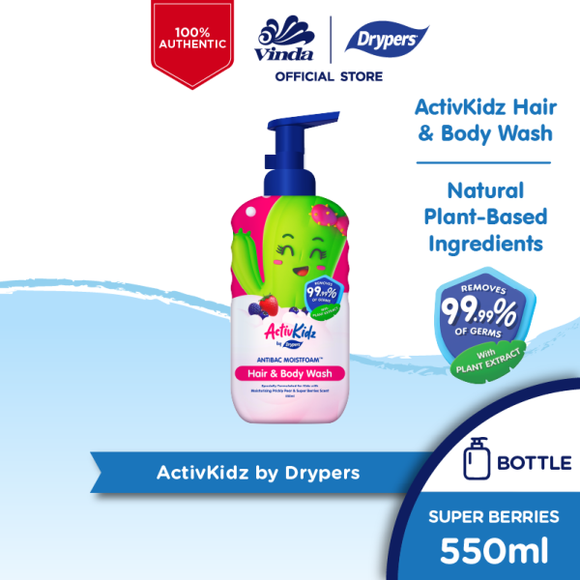 ActivKidz Drypers Antibac Moistfoam Hair & Body Wash 550ml