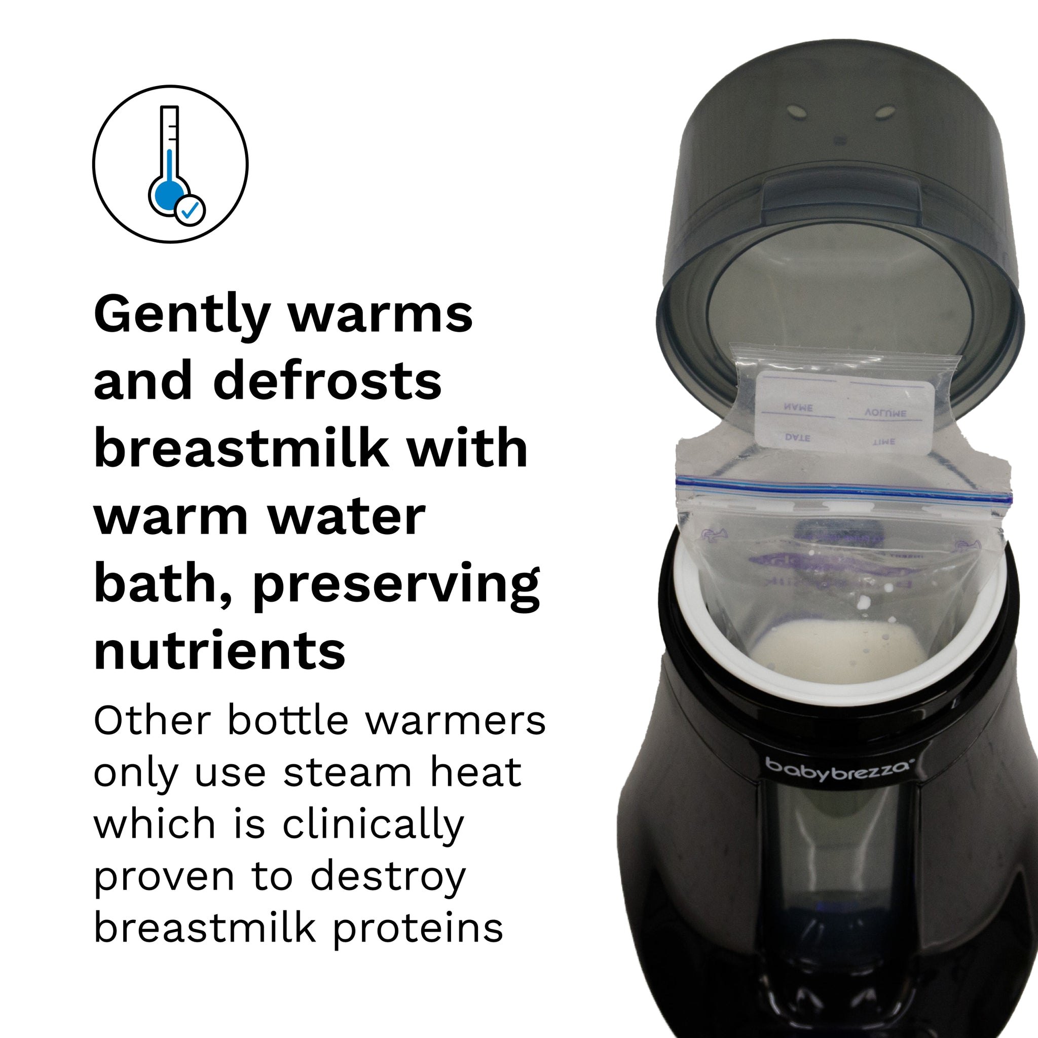 - Steady Warm safely warms or defrosts breastmilk with a warm water bath to preserve nutrients (unlike other warmers that only use steam heat which destroys breastmilk proteins);