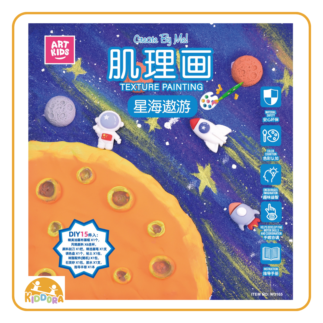 Let kids explore creativity with the Art Kids Texture Painting Set! Using multi-textured materials, they can build vibrant masterpieces while improving motor skills. Mix the paint with the sand, add the included accessories and sprinkle with glitters to make your masterpiece life-like.