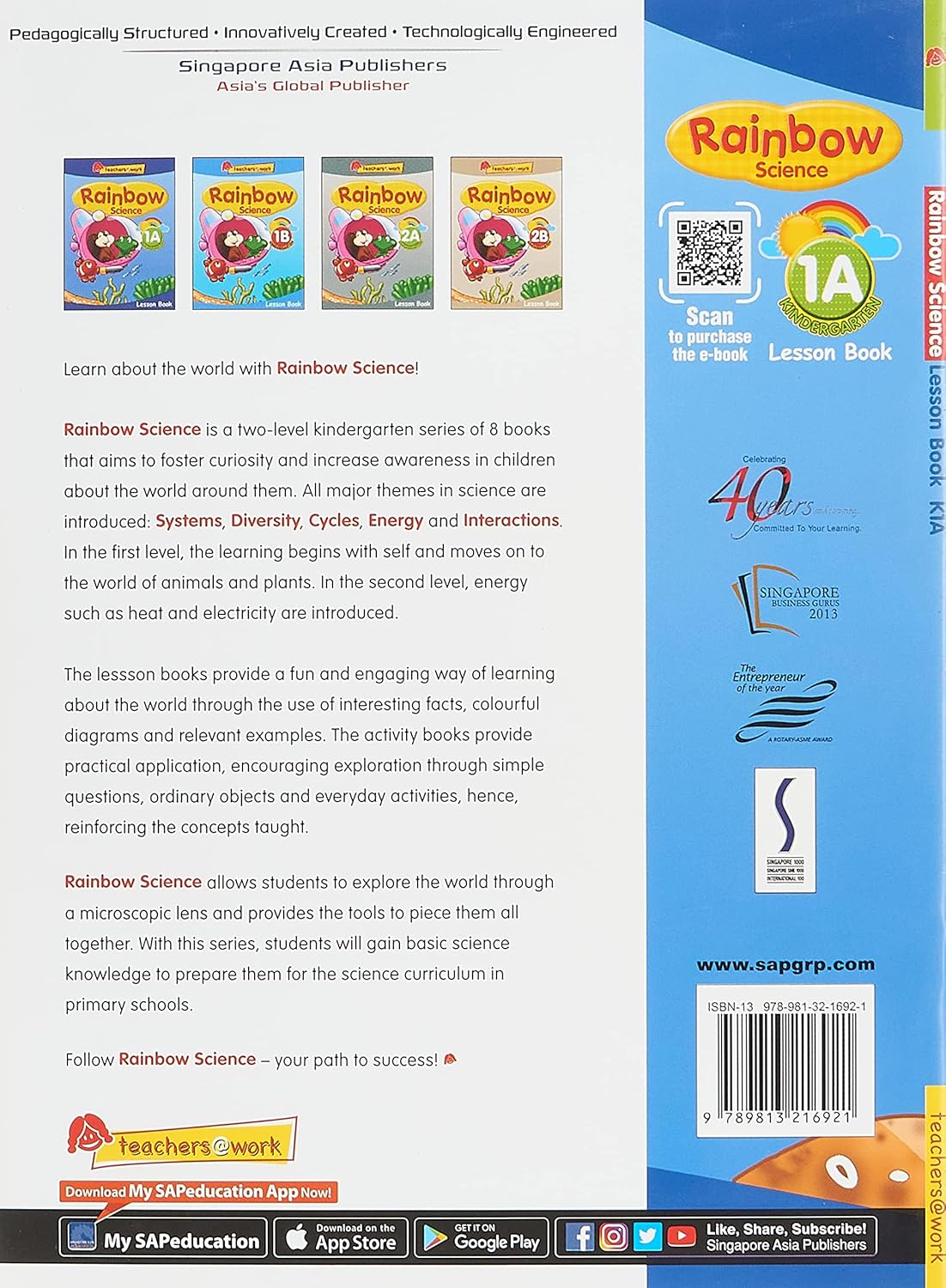 Rainbow Science Lesson Book K1A is a pre-primary activity book designed to introduce Science to young children in a fun manner. This book covers topics such as the body, the five senses, things around us, things we feel and keeping clean.