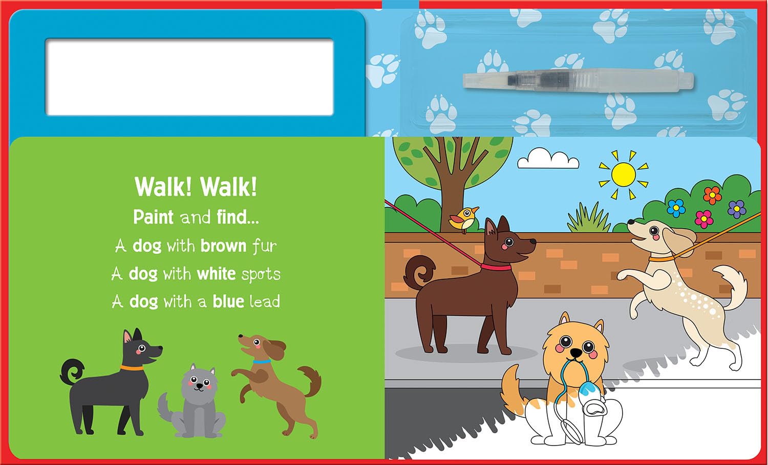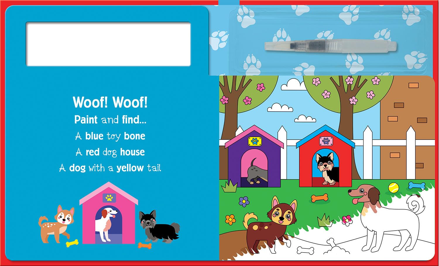 Create woof-tastic dog and puppy pictures with this water painting book, then seek and find the things that are hiding on each page. Simply apply water with the special pen, leave to dry, then paint your pictures and seek and find again.