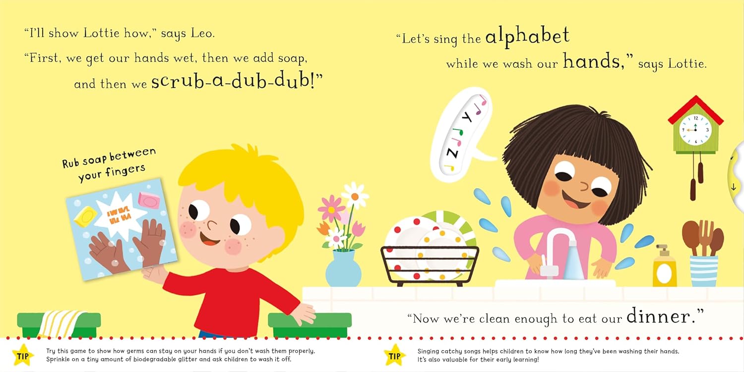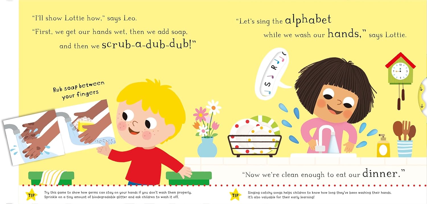 Follow the ups and downs of their journey, brought to life with fun flaps and mechanisms. Each page has really helpful tips for parents and carers that are endorsed by The Good Toy Guide and leading Early Years Consultant, Dr Amanda Gummer. With delightful illustrations from Marie Kyprianou, Let's Wash Our Hands is a brilliant way to introduce cleanliness in a fun and relatable way.