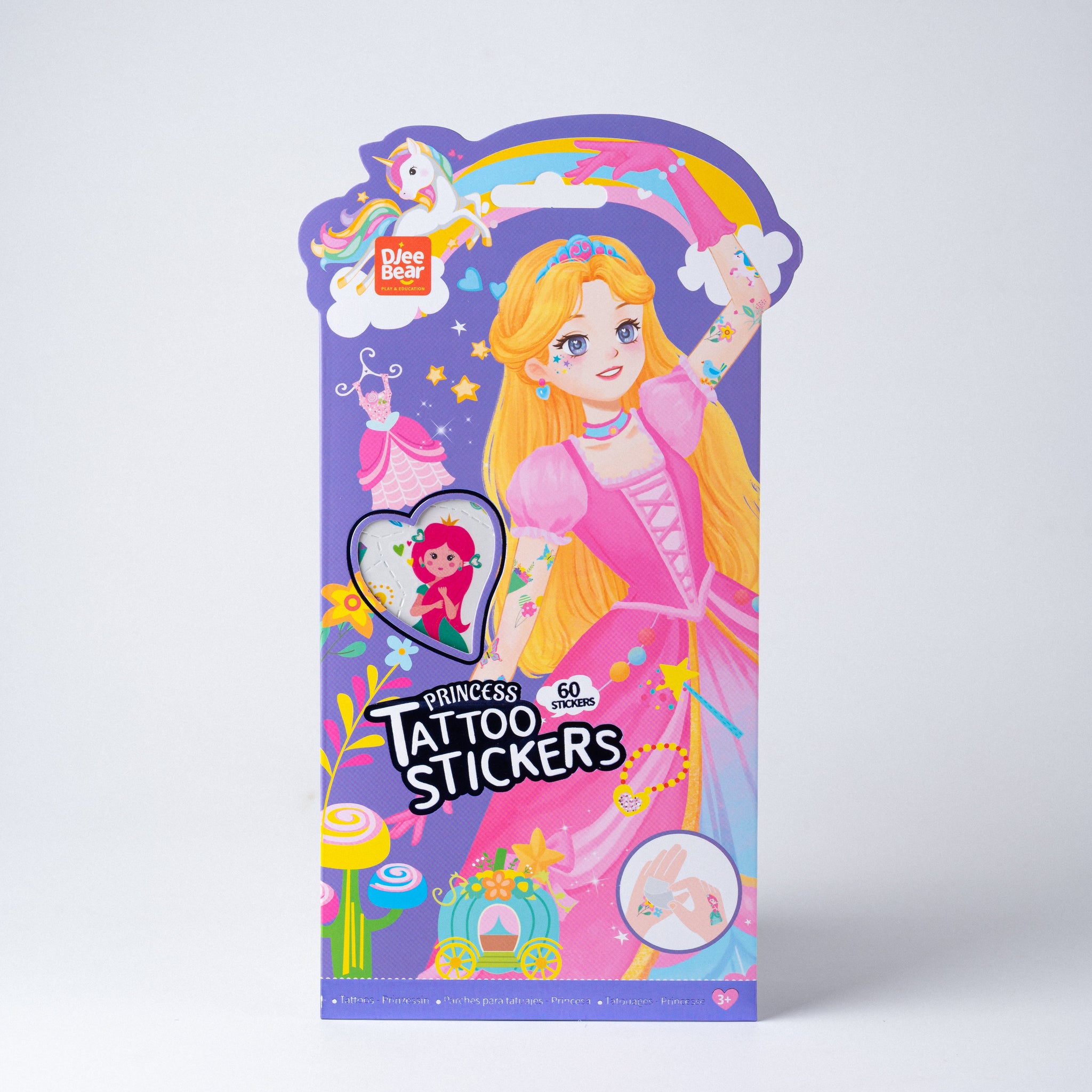 Become an Ocean Mermaid or a Royal Princess with Djee Bear Tattoo Stickers! This set of 60+ temporary tattoos is easy to apply with just a little water, safe for kids' skin, and perfect for parties, dress-up, or just a magical day of play! Get the fun without the commitment!