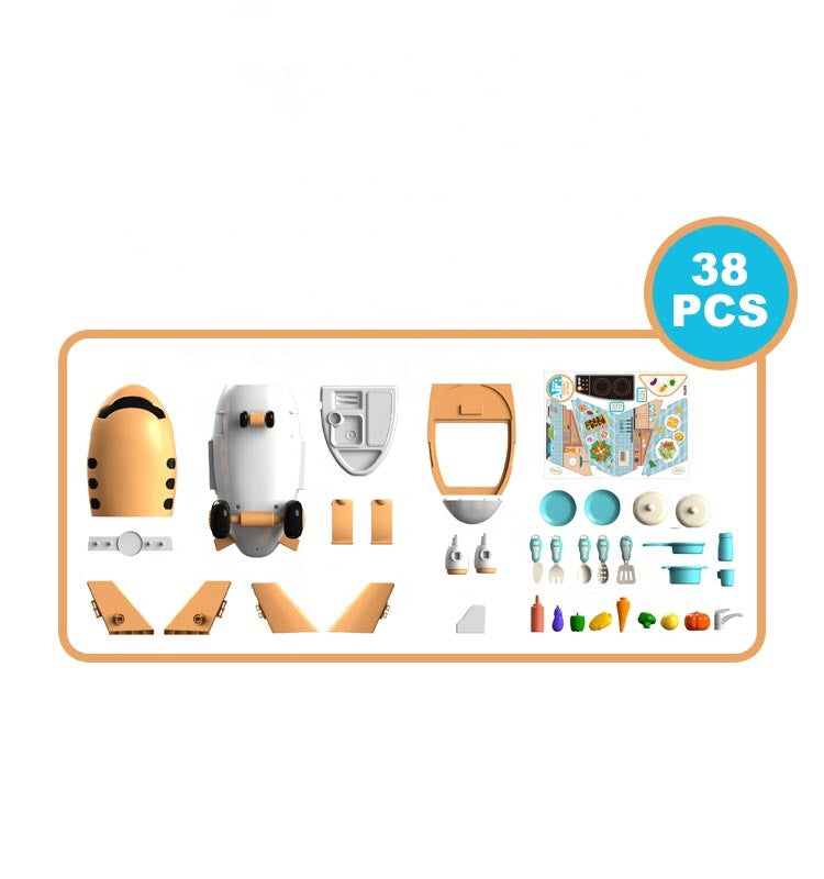 38-Piece Playset: It includes all the non-toxic ABS plastic utensils and pretend ingredients your little chef needs—from pots and pans to colorful vegetables—for preparing delicious 'in-flight' meals.