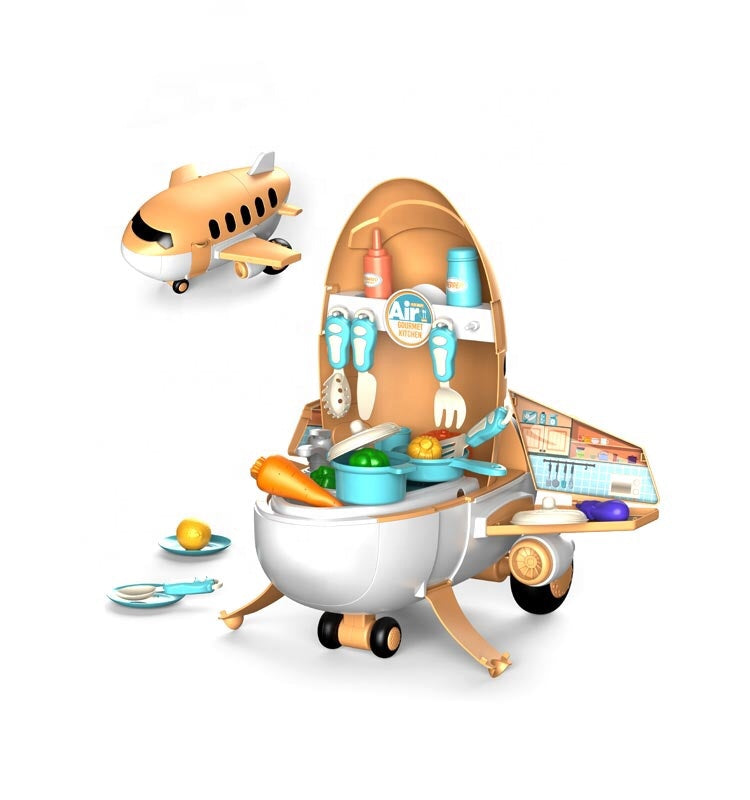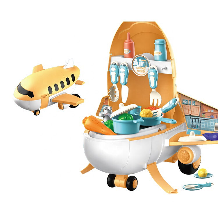 2-in-1 Transformation: The cute, compact airplane shell folds out to reveal a fully equipped play kitchen, perfect for on-the-go fun or an easy cleanup.