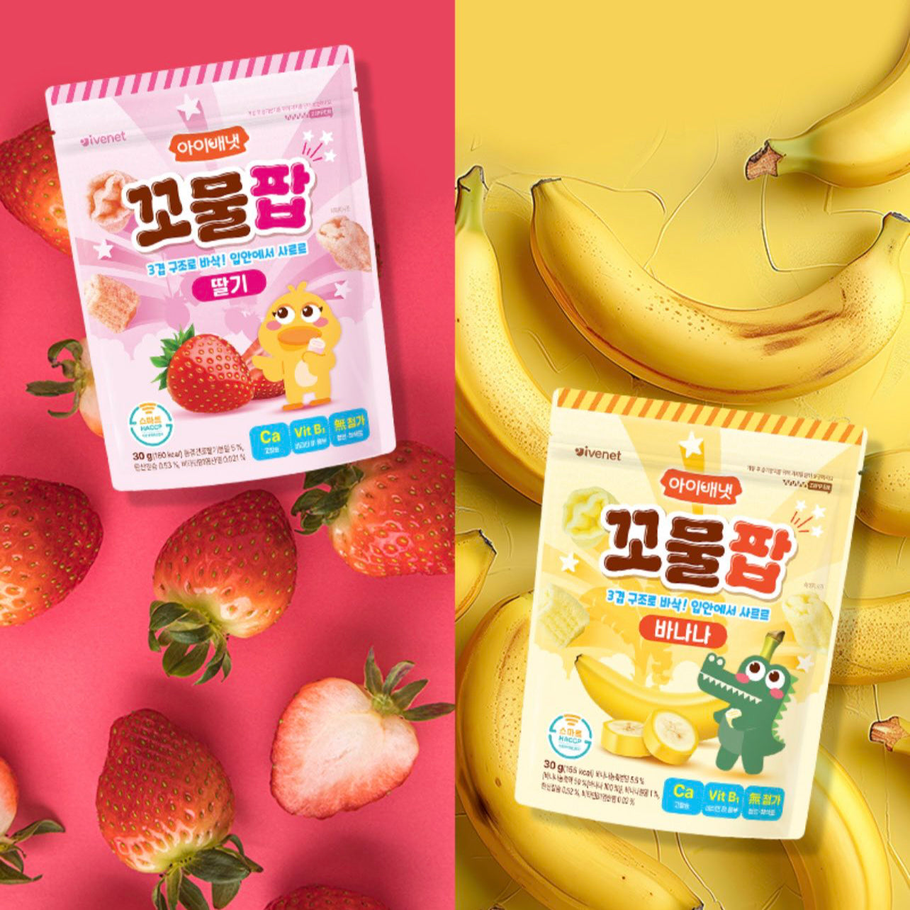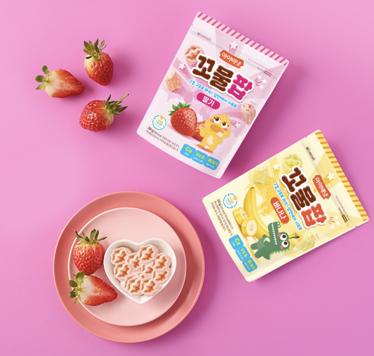 Oiled with a small amount of sunflower oil and seasoned with banana and strawberry powder