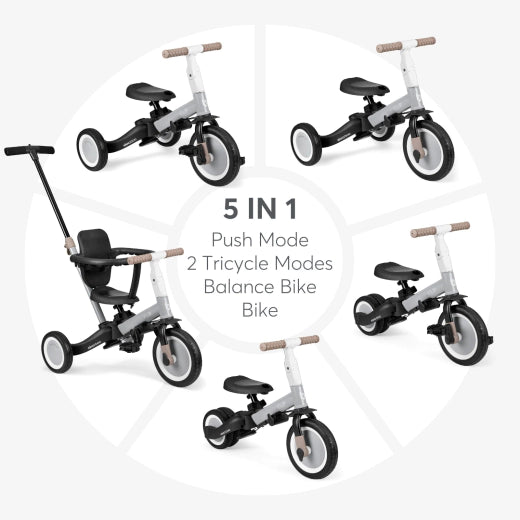 - 5in1 Design - Adaptable to various stages, including Push Mode, Tricycle, Tricycle without pedals, Balance Bike, and Bike, providing long-term use and value.
