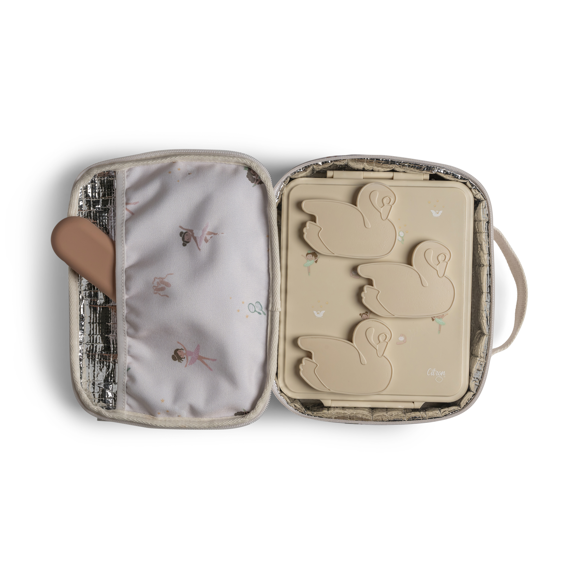 - Insulated square lunch bag with zipper opening