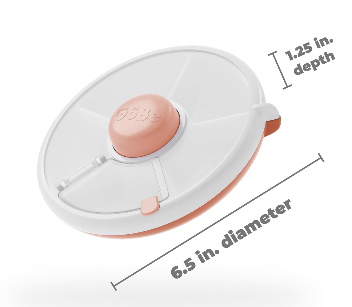 The GoBe Snack Spinner is the only spill resistant snack container that empowers your child to choose between five different snacks in a safe and engaging eating environment. With the simple push of a button, your little one will continue strengthening neural connections by learning how to access each compartment through a flip top mechanism. Moreover, the level of autonomy your child will exercise by actively choosing what to eat will help them develop healthy relationships with food that will continue to grow with them.
