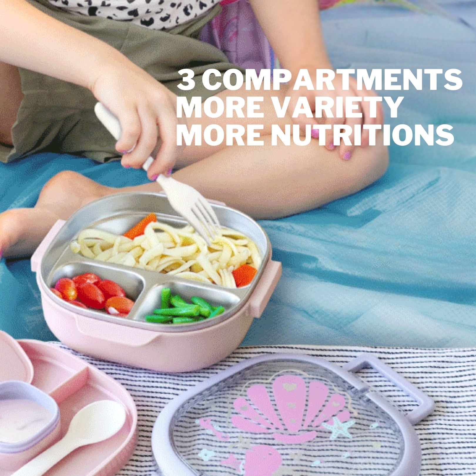 Available in two charming themes—dinosaur and seashell—this cute bento box is not just functional but also stylish. Perfect for parents looking to buy lunch boxes online, this metal snack box is a must-have for every child's lunchtime routine. Elevate your child's meal experience with our stylish box that combines practicality with playful designs!