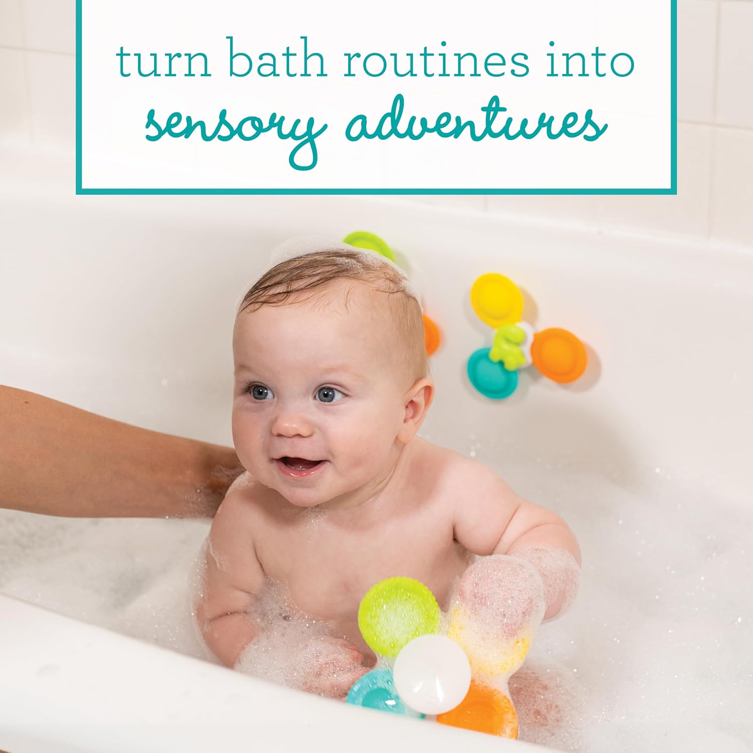 - ADDS A SPALSH OF FUN: With their playful designs, the Infantino Silicone Bath Pop Spinners make baths more enjoyable for both parents and babies. Turn an ordinary bath into a sensory adventure with these engaging toys!