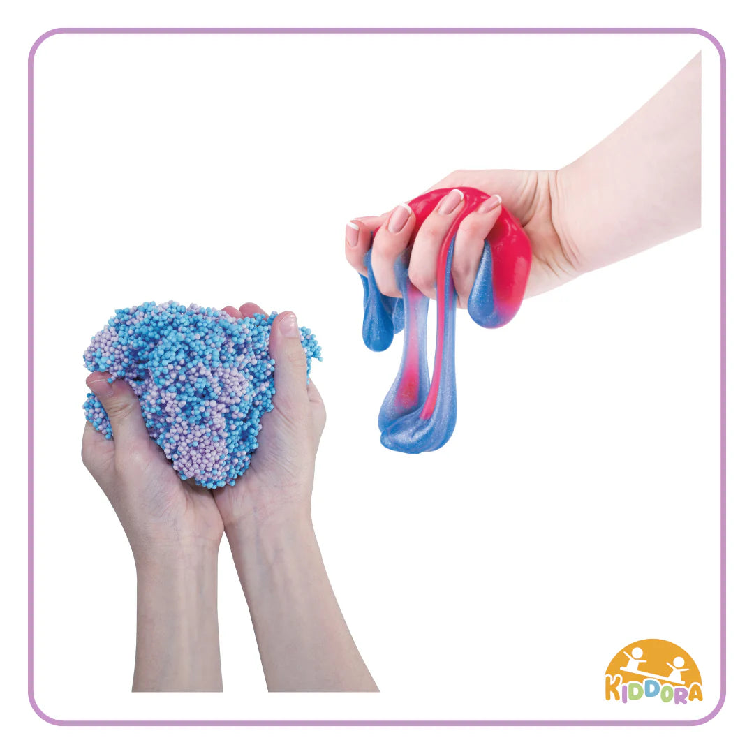 This kit includes slime, air dry clay, funny dough, and fab foam, offering different textures to squish, stretch, mold, and shape. Each compound gives a unique sensory experience that keeps kids engaged while encouraging creativity and imaginative play.