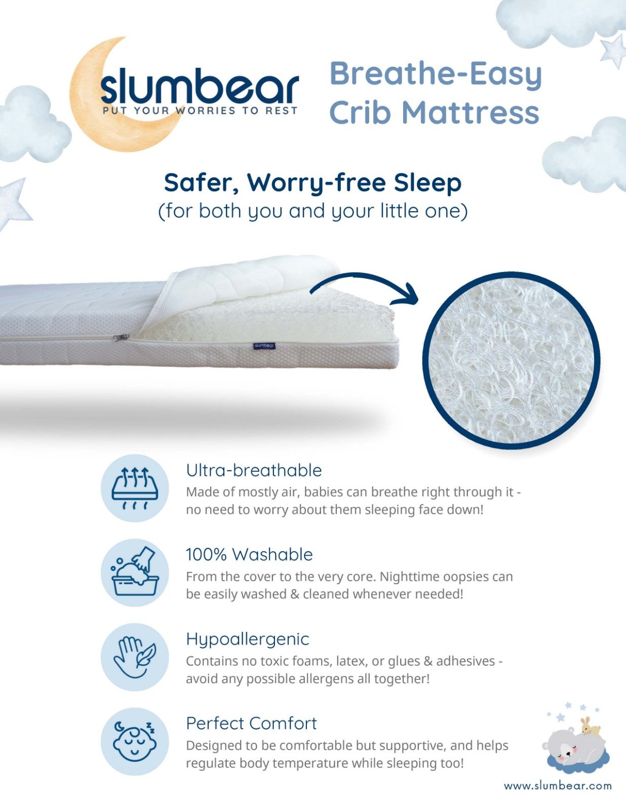 The Breathe-Easy crib mattress is designed from the inside out to ensure safety, cleanliness and comfort for your little one.