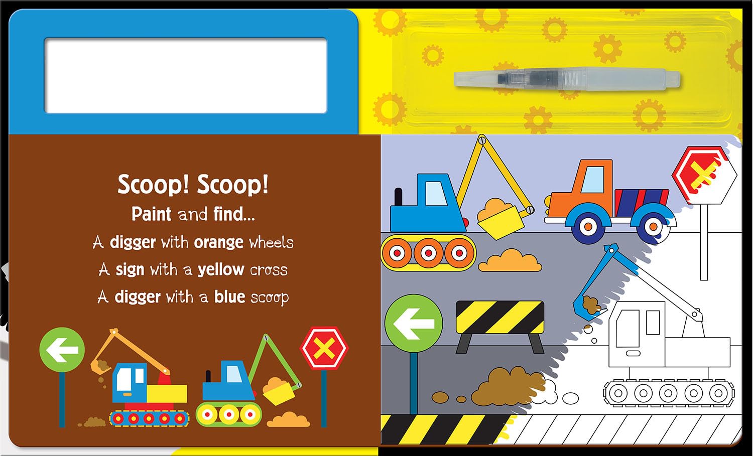 Create awesome construction site pictures with this water painting book, then seek and find the things that are hiding on each page. Simply apply water with the special pen, leave to dry, then paint your pictures and seek and find again.