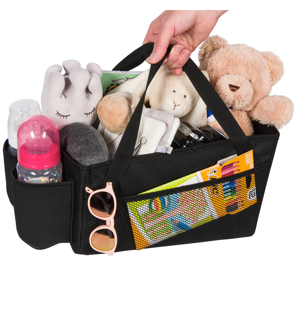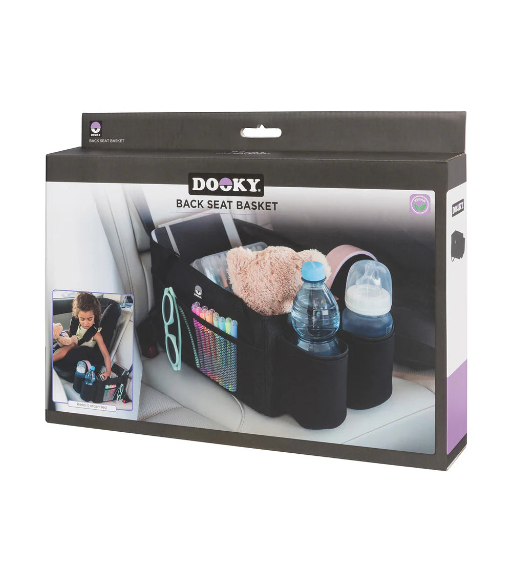The Dooky Backseat Basket is the perfect solution for keeping toys, snacks, bottles, and travel essentials neatly stored and within reach. Designed to securely attach using the seatbelt, it stays firmly in place — even on bumpy rides.