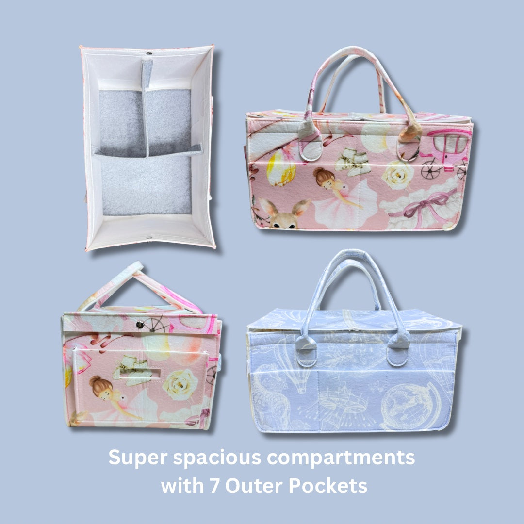 Whatsupmommah Felt Diaper Caddy is stylish and versatile handy bag for keeping all baby essentials organised and easy to find.
