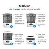 - Automatically sterilizes & dries all brands of bottles, breast pump parts, pacifiers, teethers, sippy cups, toys & other accessories in 1 easy step, saving you time