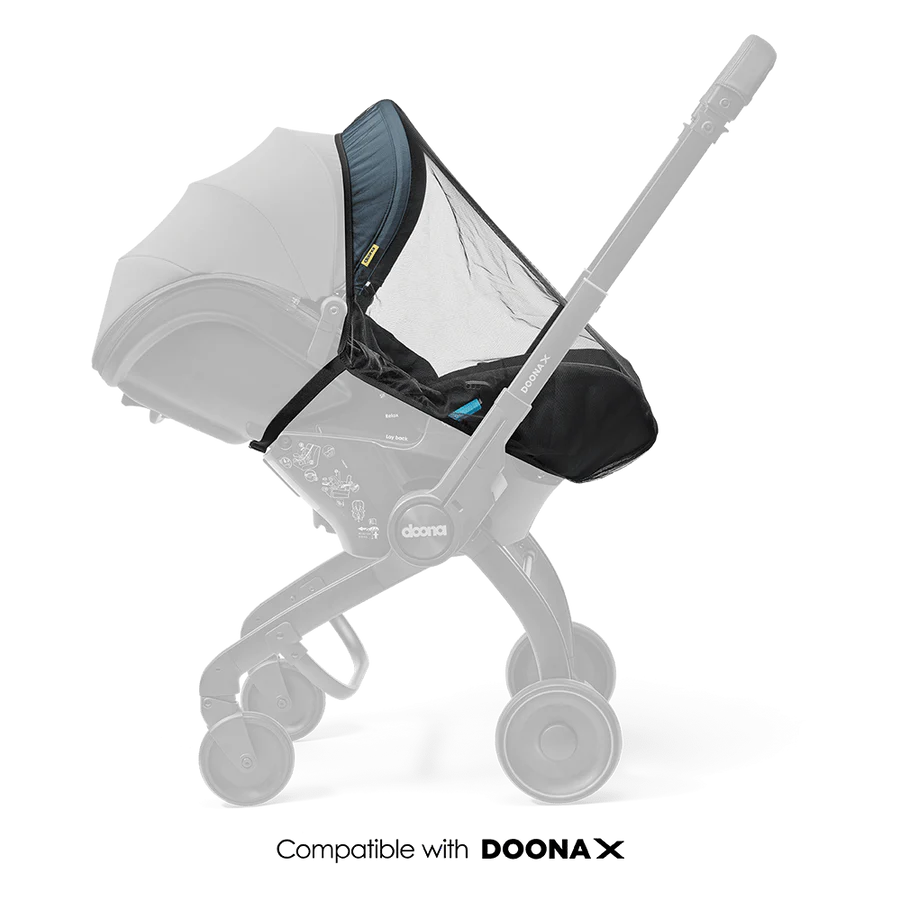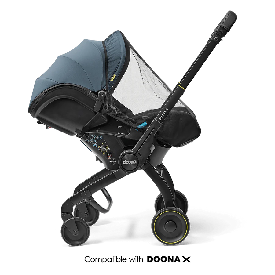 The Doona X Insect Net is designed to protect your baby from bugs and insects. The protective net is see-through and provides maximum ventilation. With the simple connectors, attaching and removing the Insect Net is quick and easy. A compact carry bag for easy storage when not in use is included.