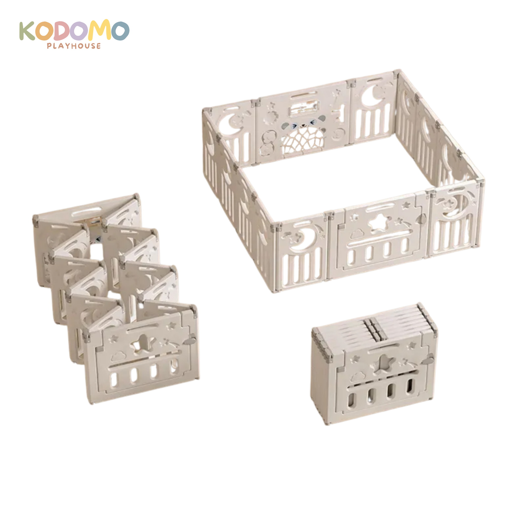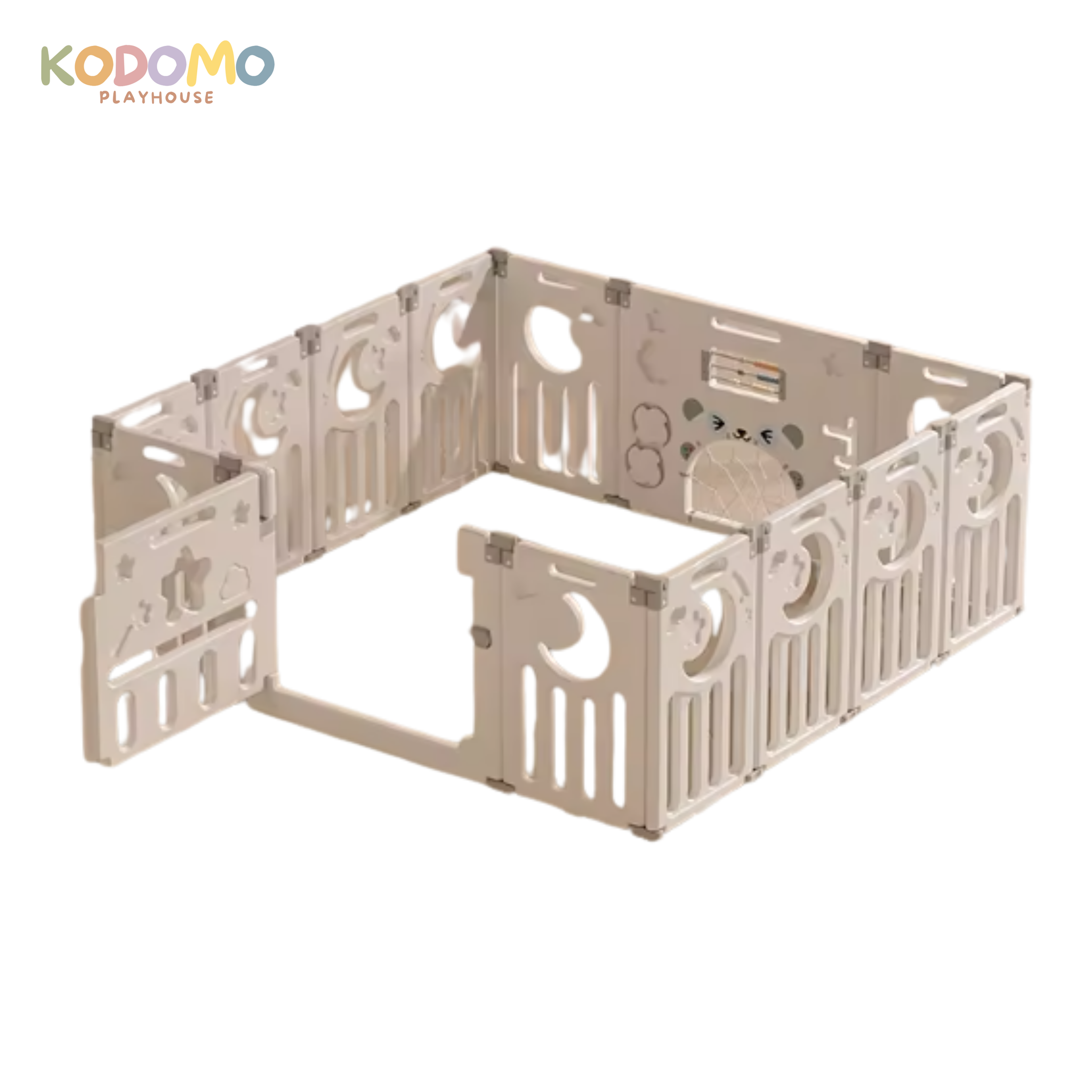 Transform any room into a magical play zone with the Kodomo Playhouse - Stars Playpen (14 Panels). This generously sized playpen offers expansive space for active play, complete with delightful star cut-outs that spark imagination. Easy to assemble and configure, its 14 durable panels create a secure and inviting environment where your child can thrive.