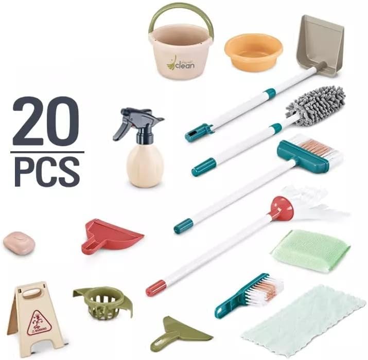 The Little Home Helper Cleaning Set is a fun and convenient kit designed for young users to engage in household chores in a playful manner. This set typically includes a variety of small, easy-to-use cleaning tools such as a miniature vacuum, feather duster, scrubber, and other accessories. These items are often brightly colored and designed with safety features to ensure they are suitable for children.